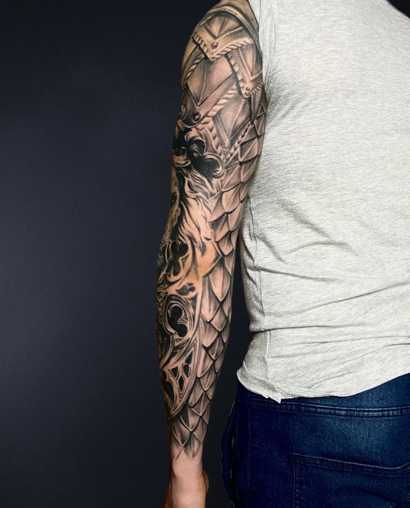 Inden for Black & Grey mestrer han kontraster, skygger og bløde overgange, som giver tatoveringerne liv og dimension. Hans arbejde spænder fra rå og kraftfulde motiver til mere elegante og detaljerige kompositioner – altid med en sikker forståelse for lys, dybde og struktur.