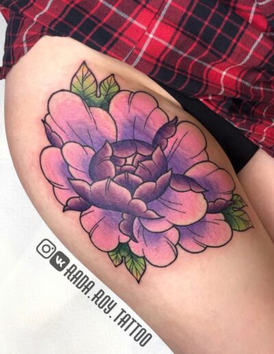 Blomster og andre elementer fra naturen, særligt blade, er også typisk fremtrædende i Neo Traditional Tattoo.