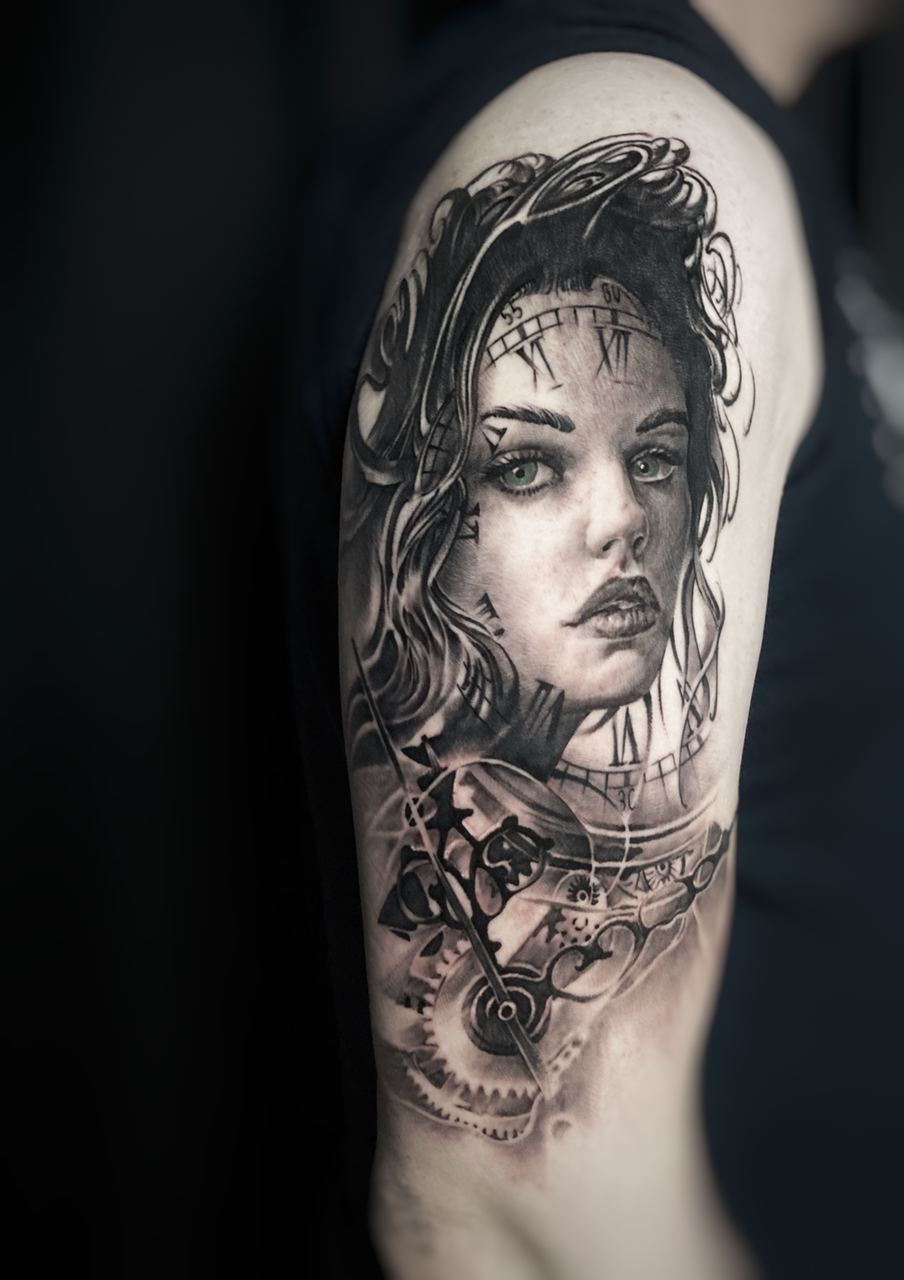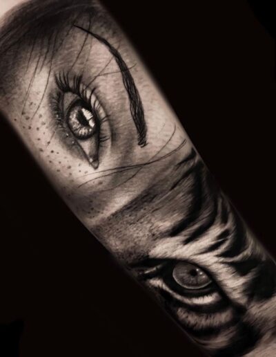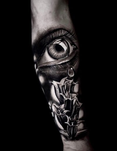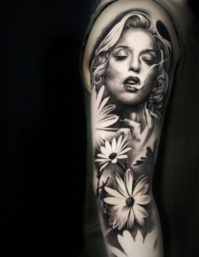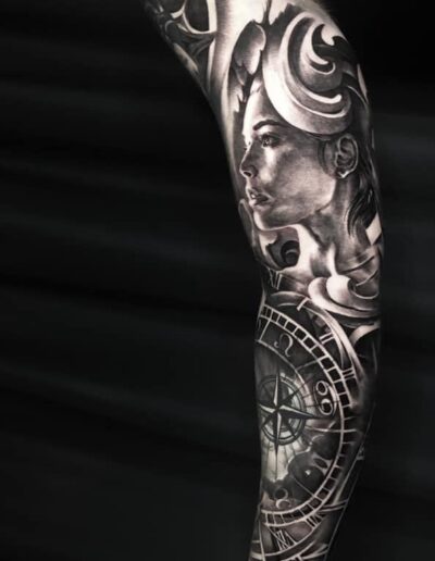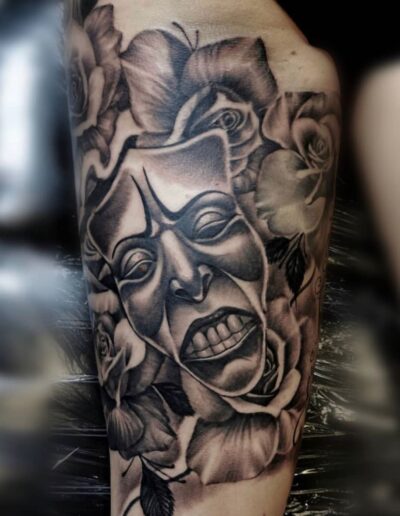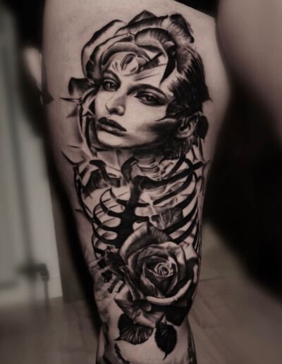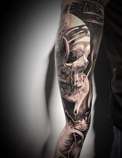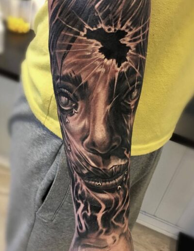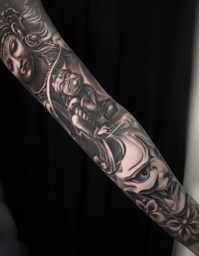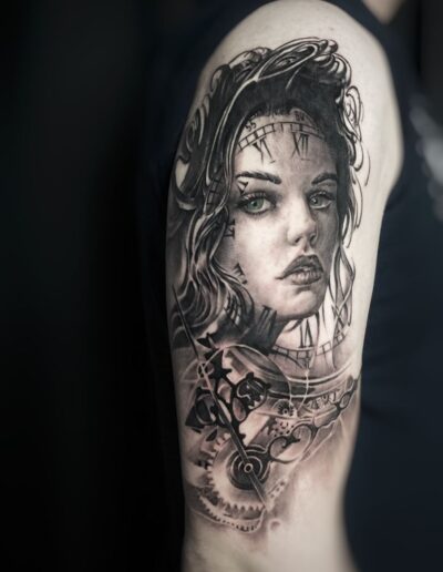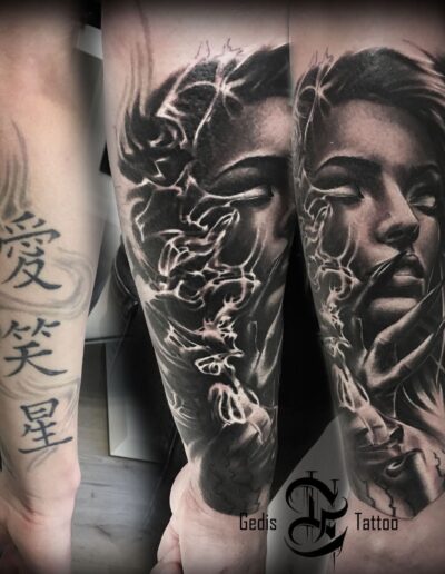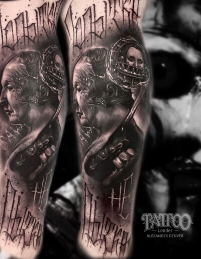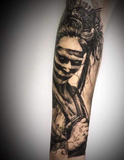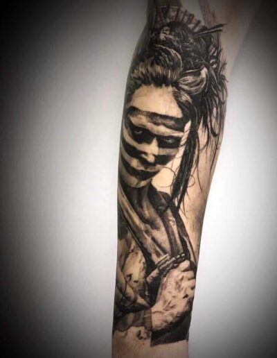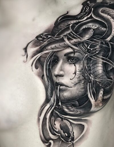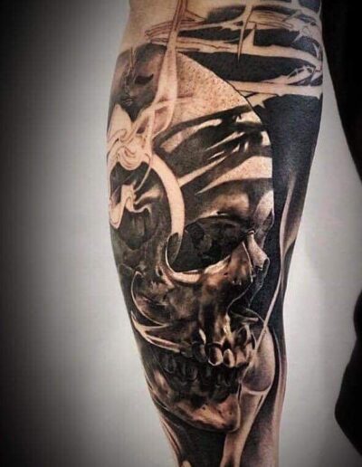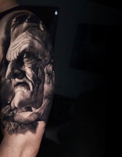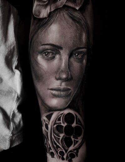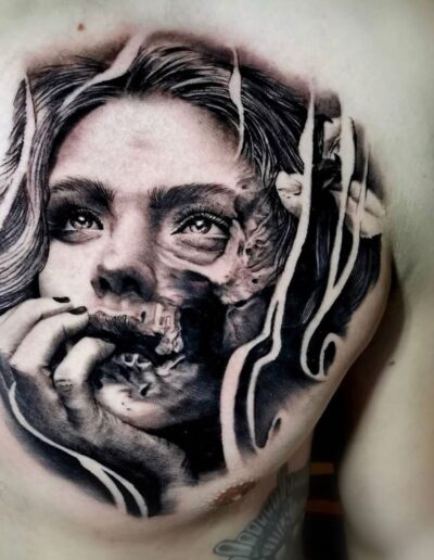 Black and Grey tattoo går godt med den japanske Irezumi, Portræt, Horror, abstrakt, surrealisme og i særdeleshed Realisme.