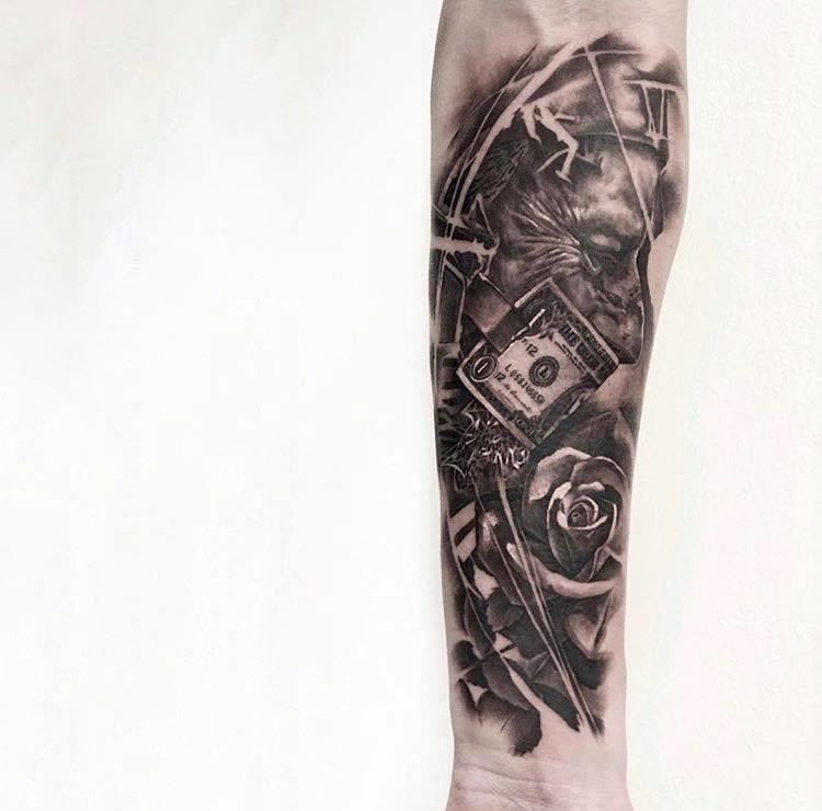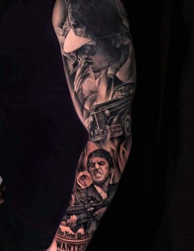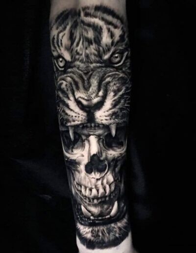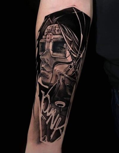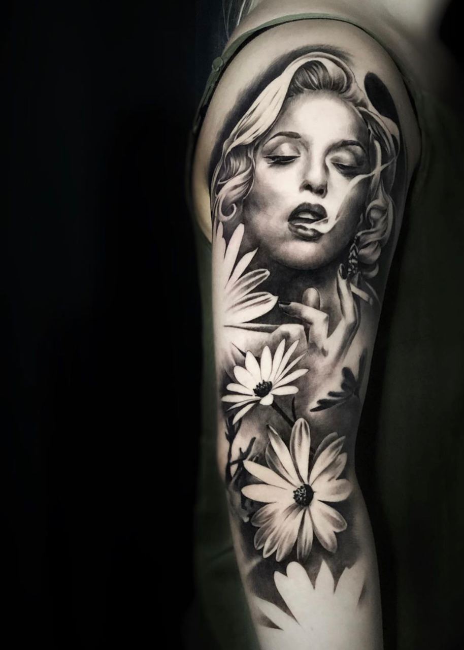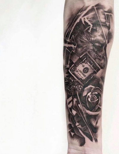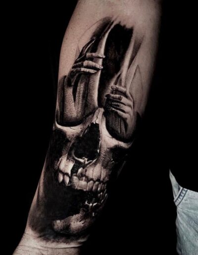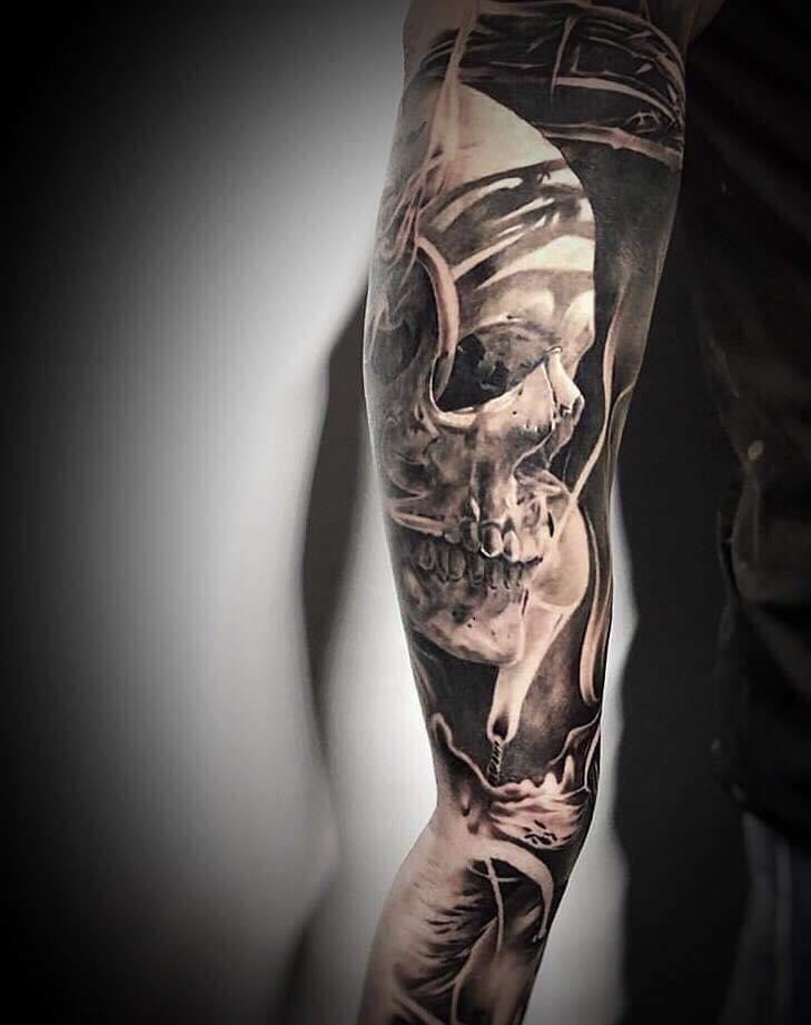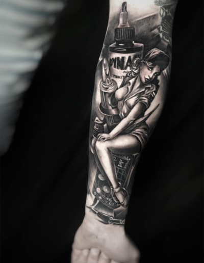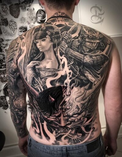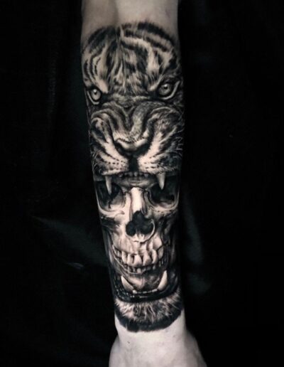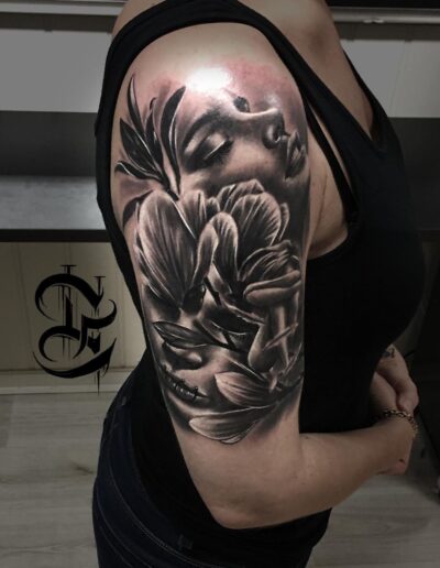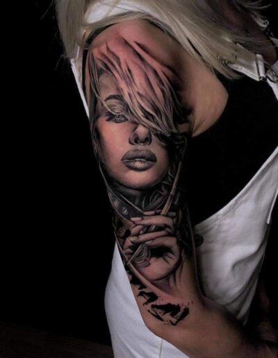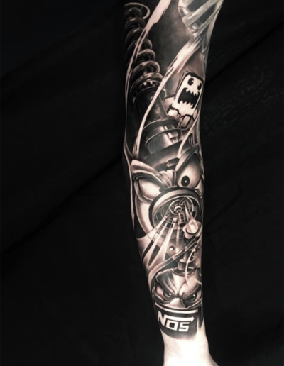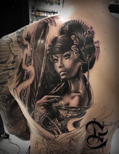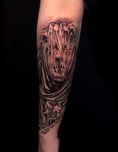 Black and Grey tattoo går godt med den japanske Irezumi, Portræt, Horror, abstrakt, surrealisme og i særdeleshed Realisme.