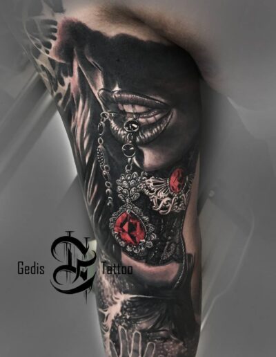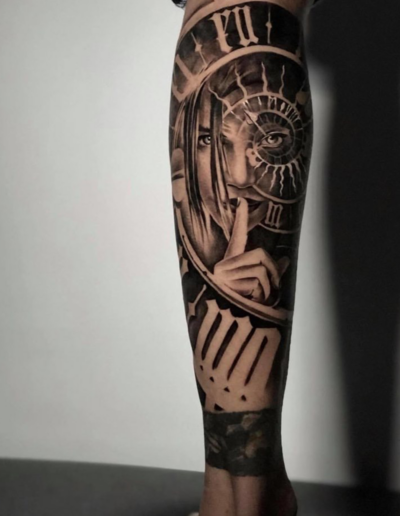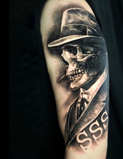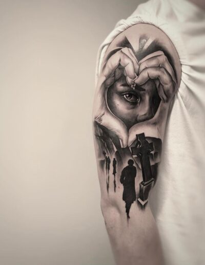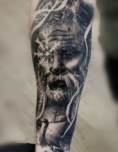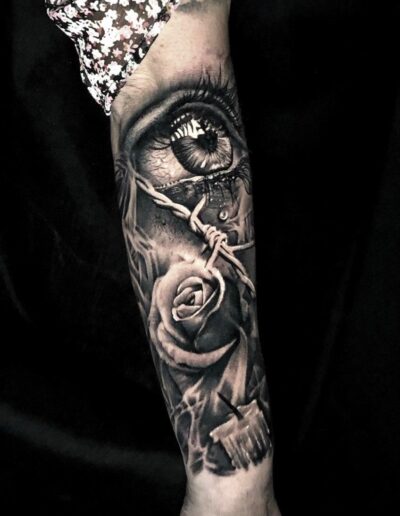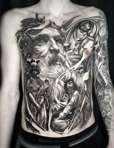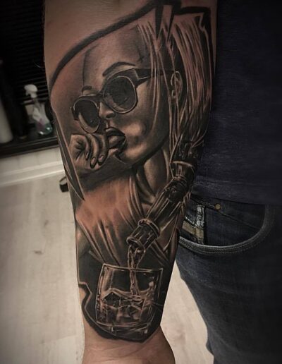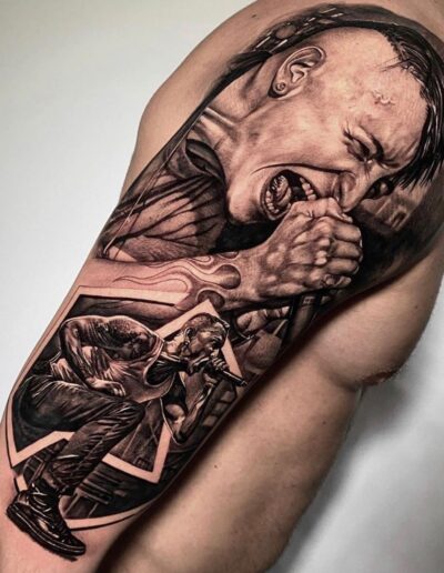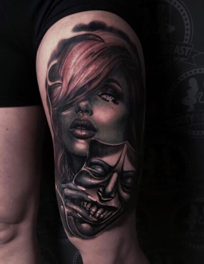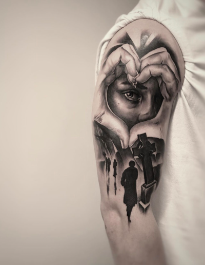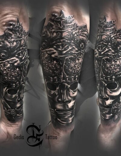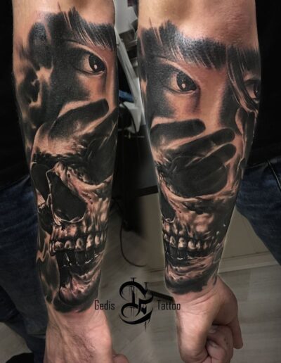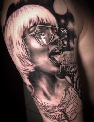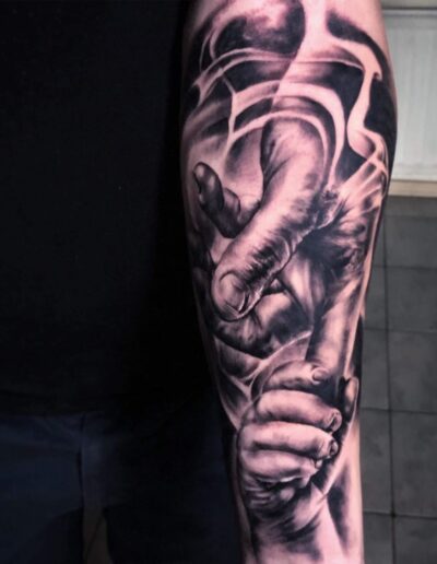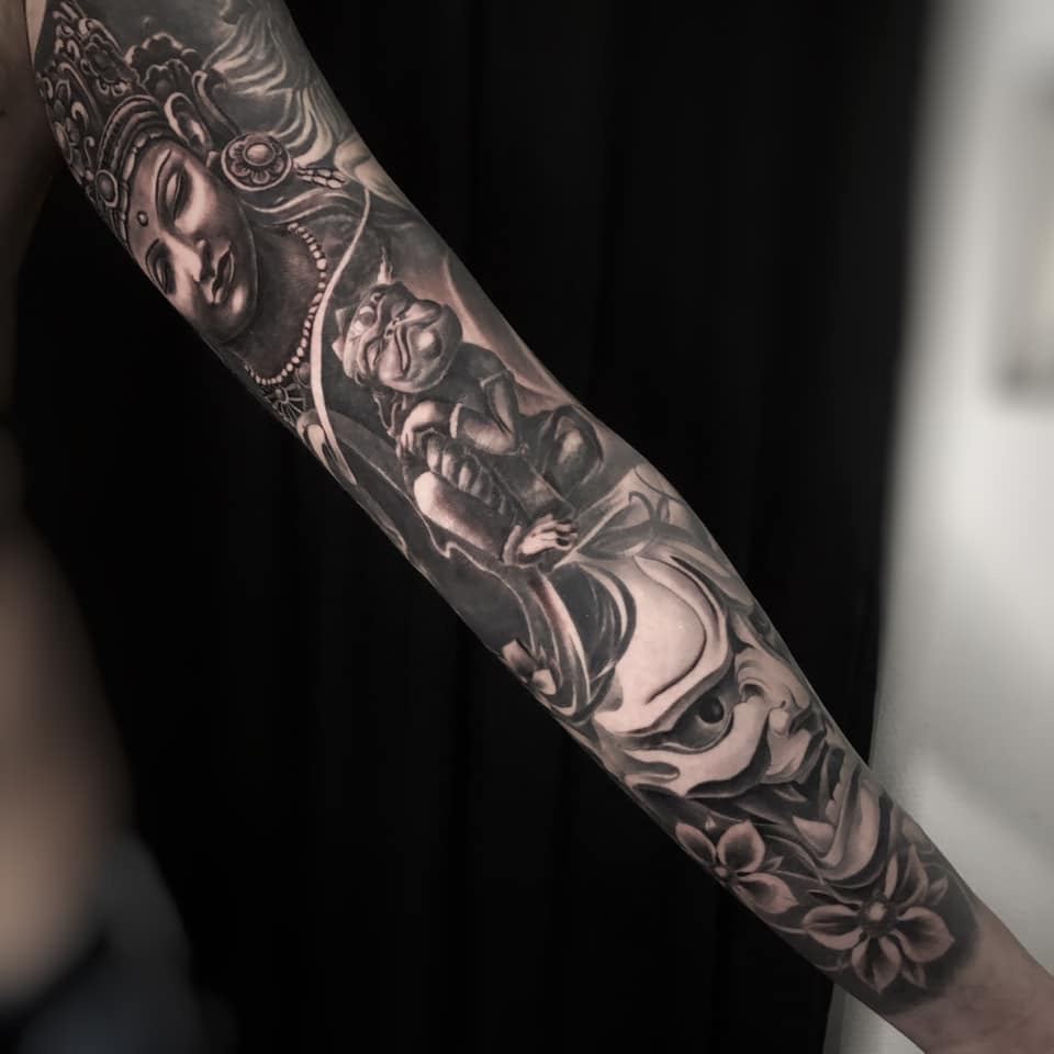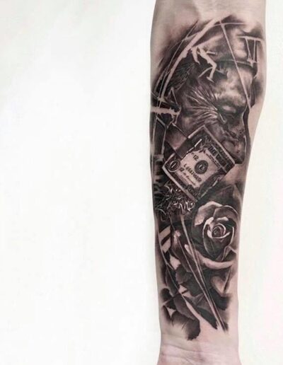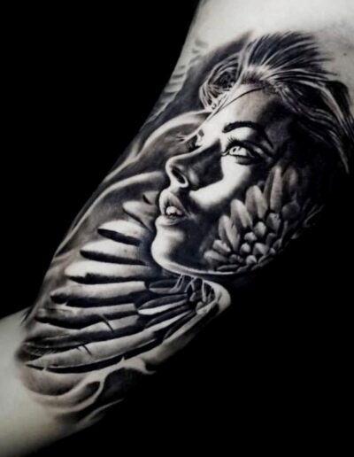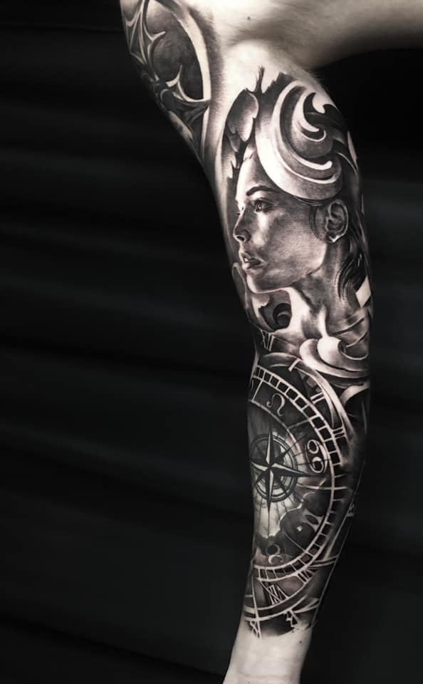 Black and Grey tattoo går godt med den japanske Irezumi, Portræt, Horror, abstrakt, surrealisme og i særdeleshed Realisme.