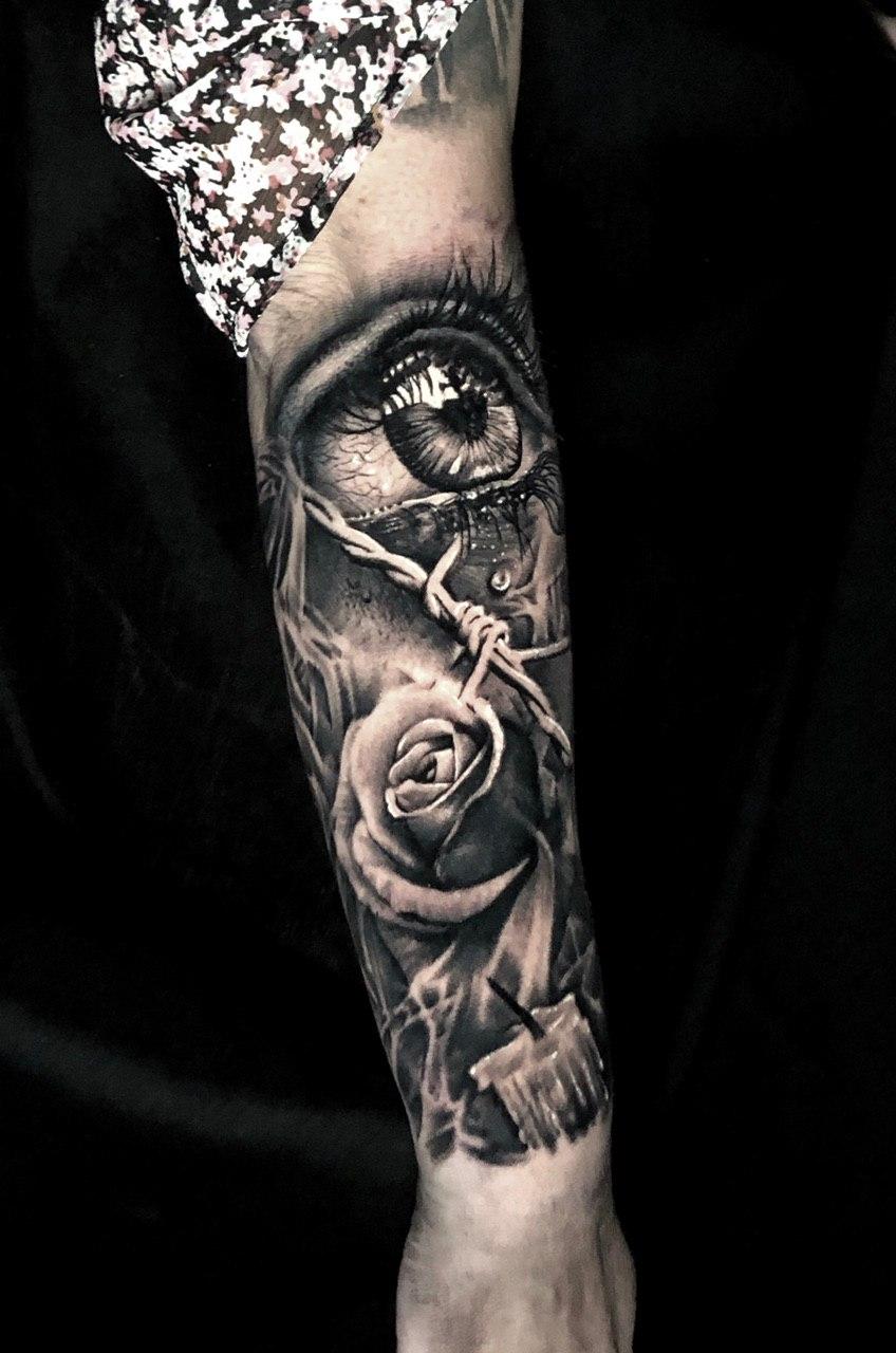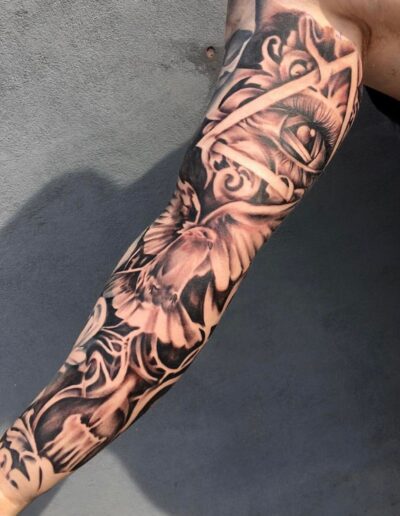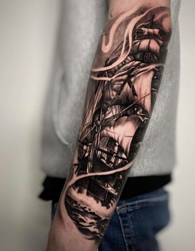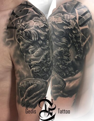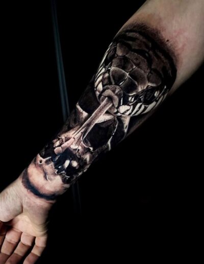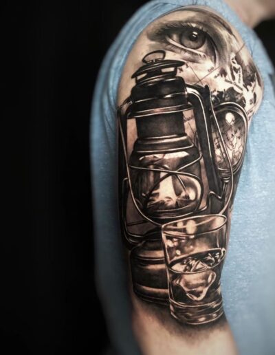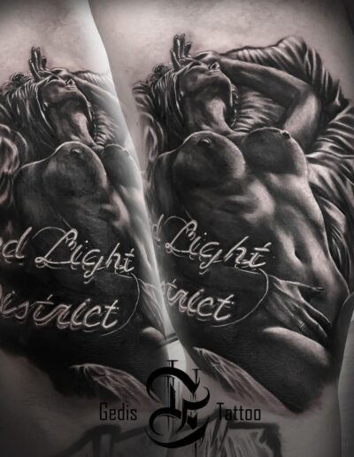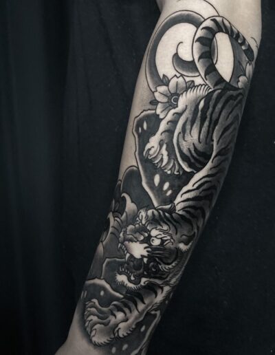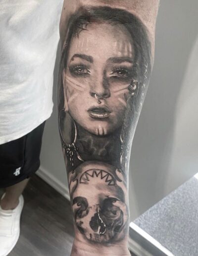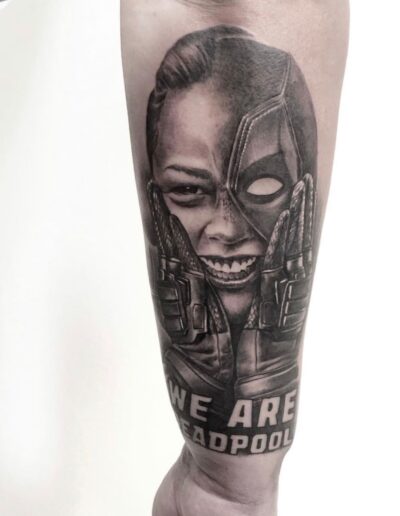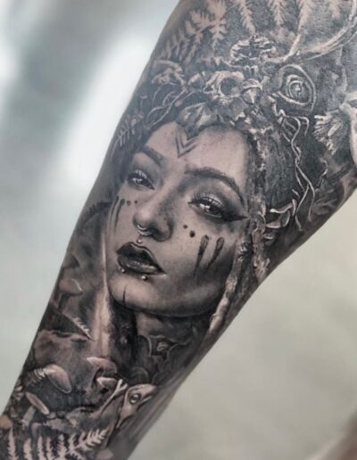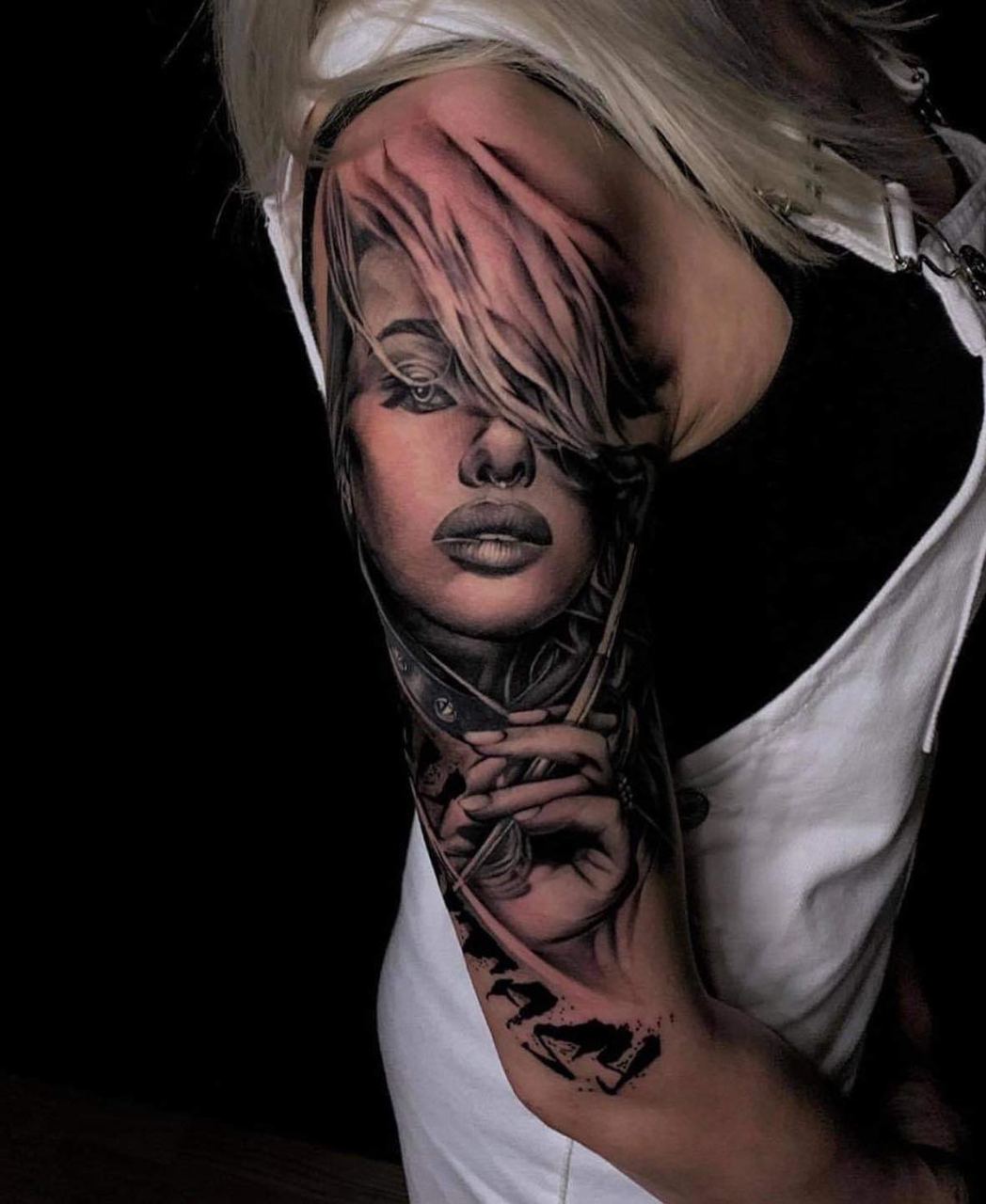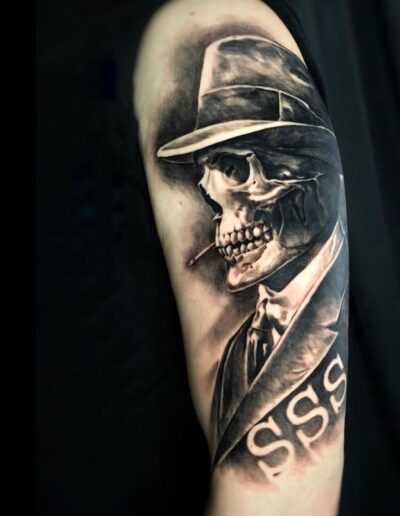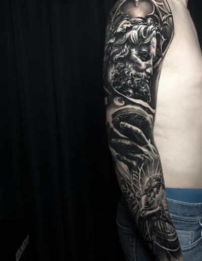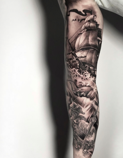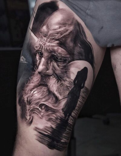 Black and Grey tattoo går godt med den japanske Irezumi, Portræt, Horror, abstrakt, surrealisme og i særdeleshed Realisme.
