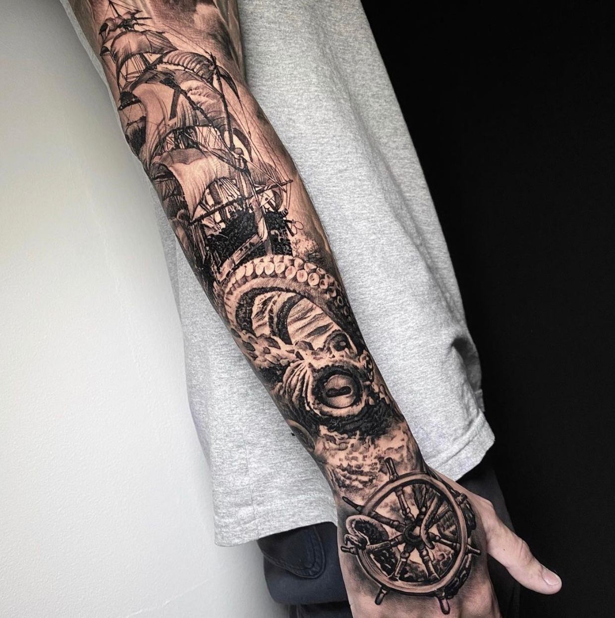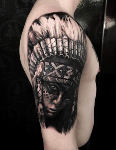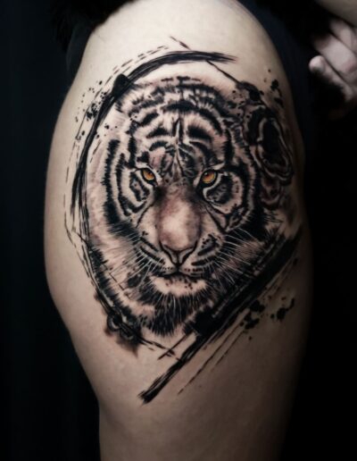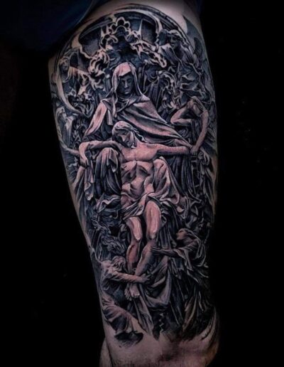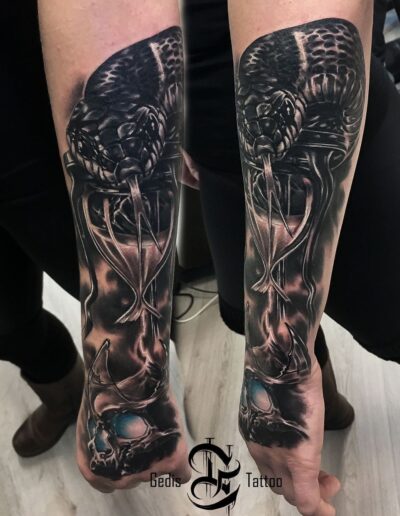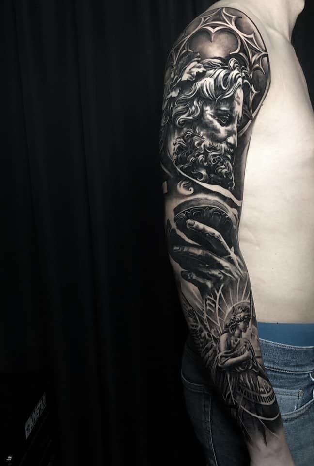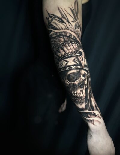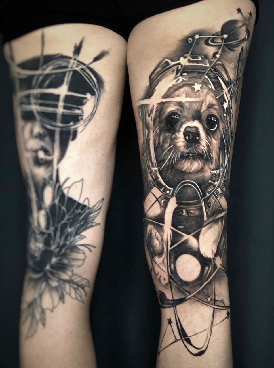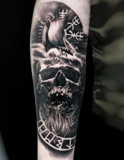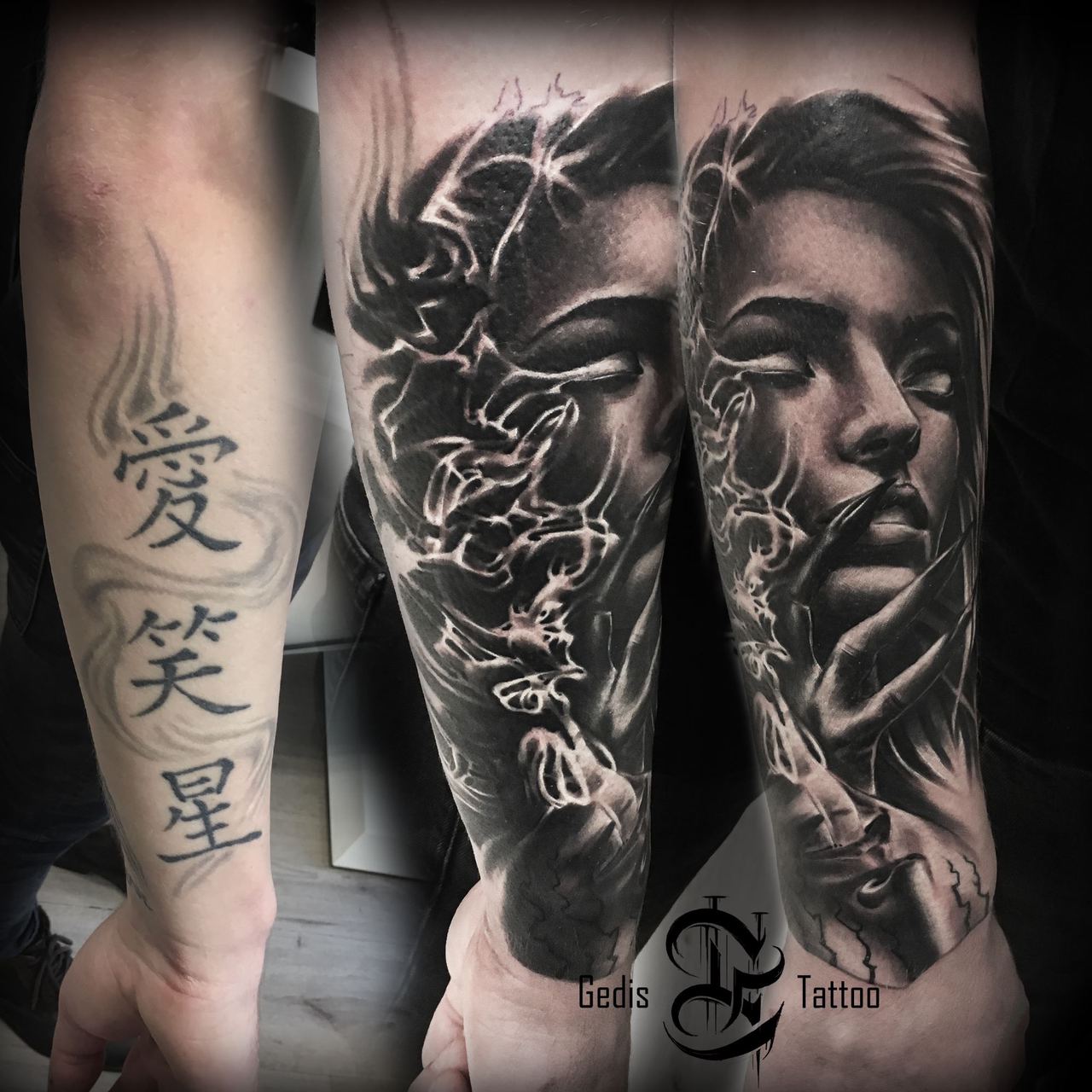Black and Grey tattoo går godt med den japanske Irezumi, Portræt, Horror, abstrakt, surrealisme og i særdeleshed Realisme.