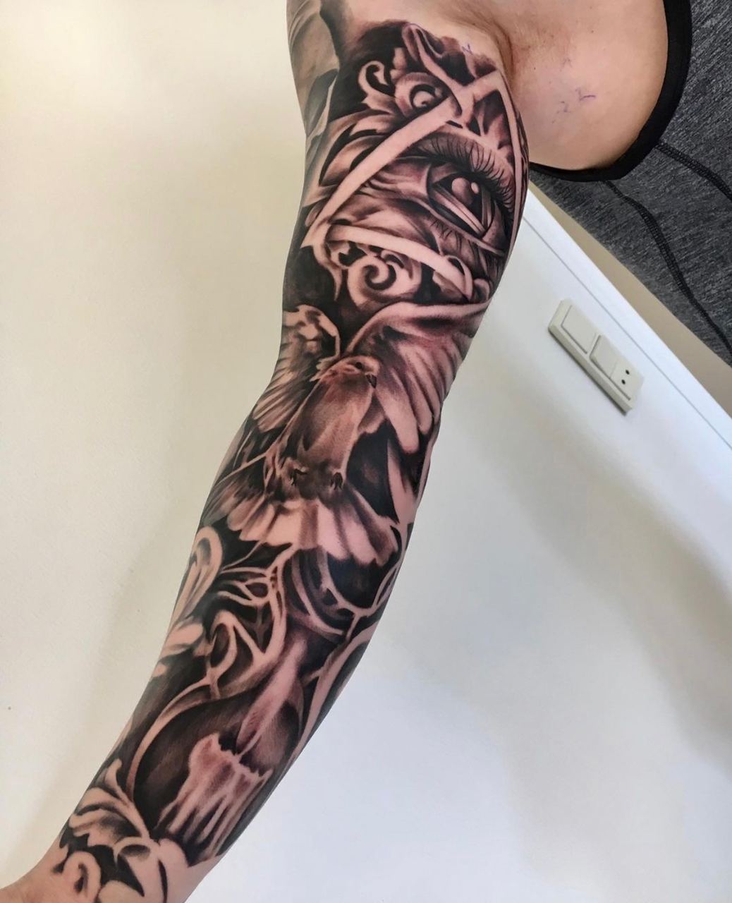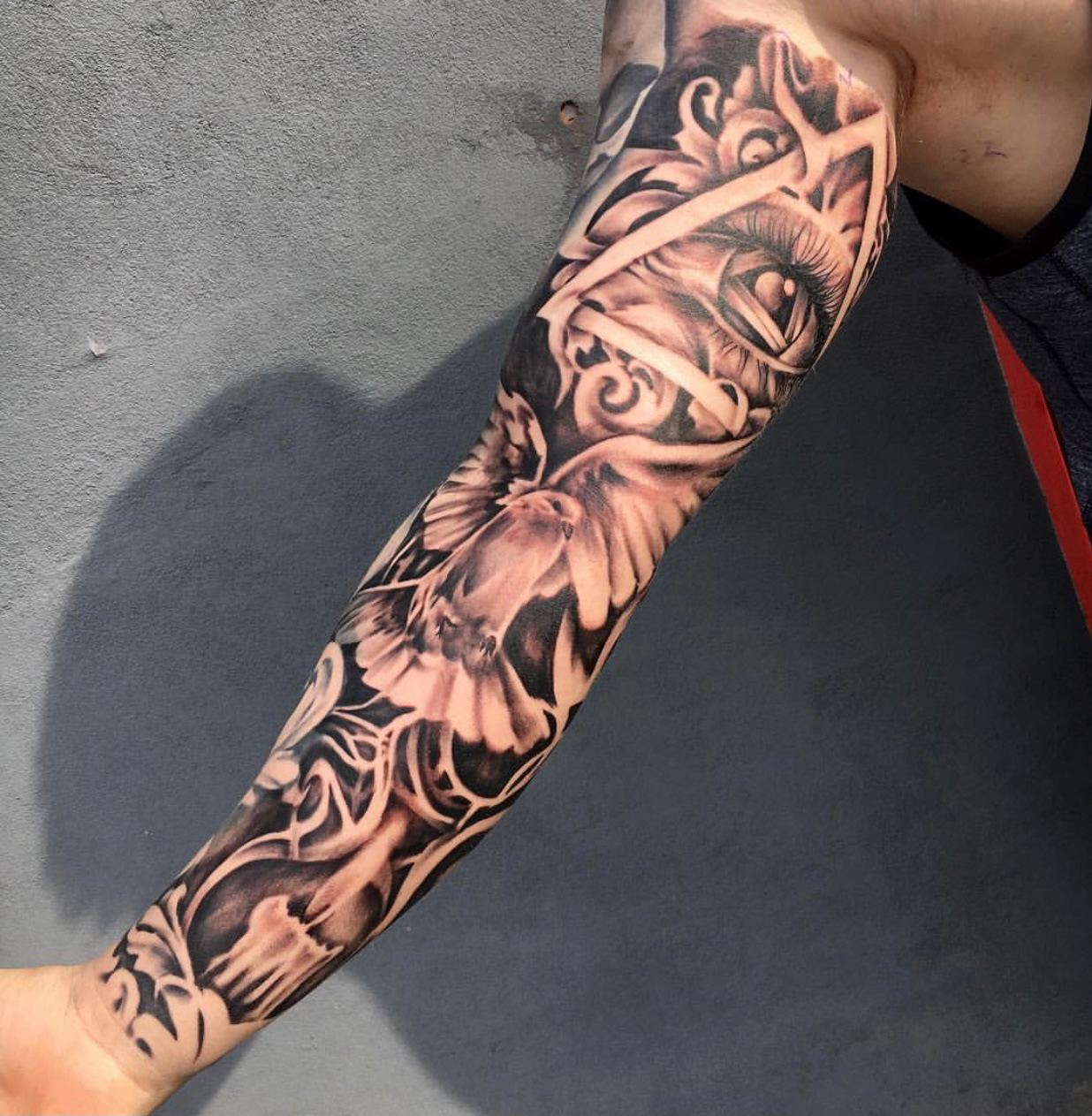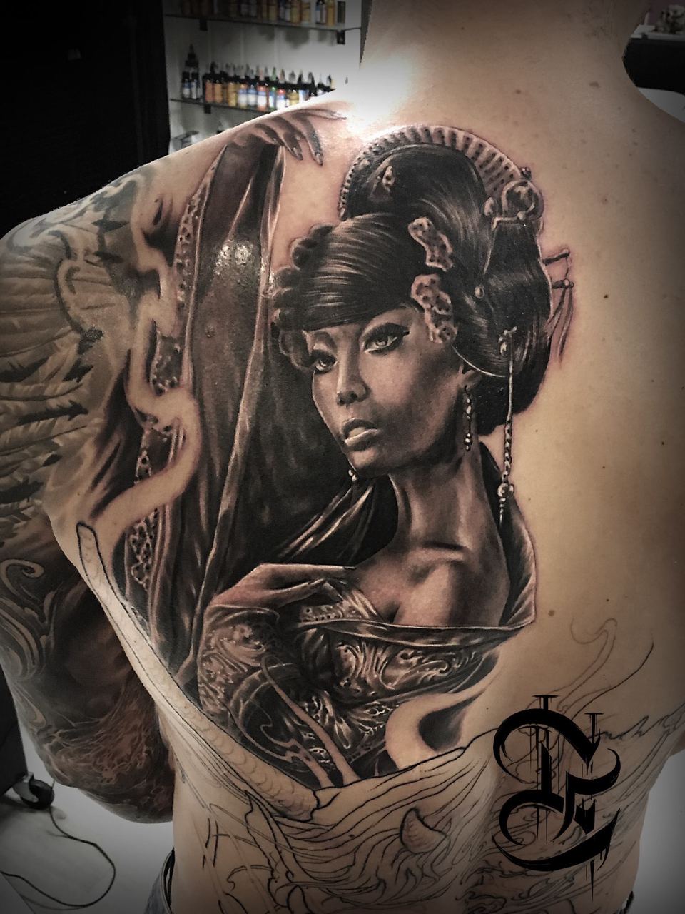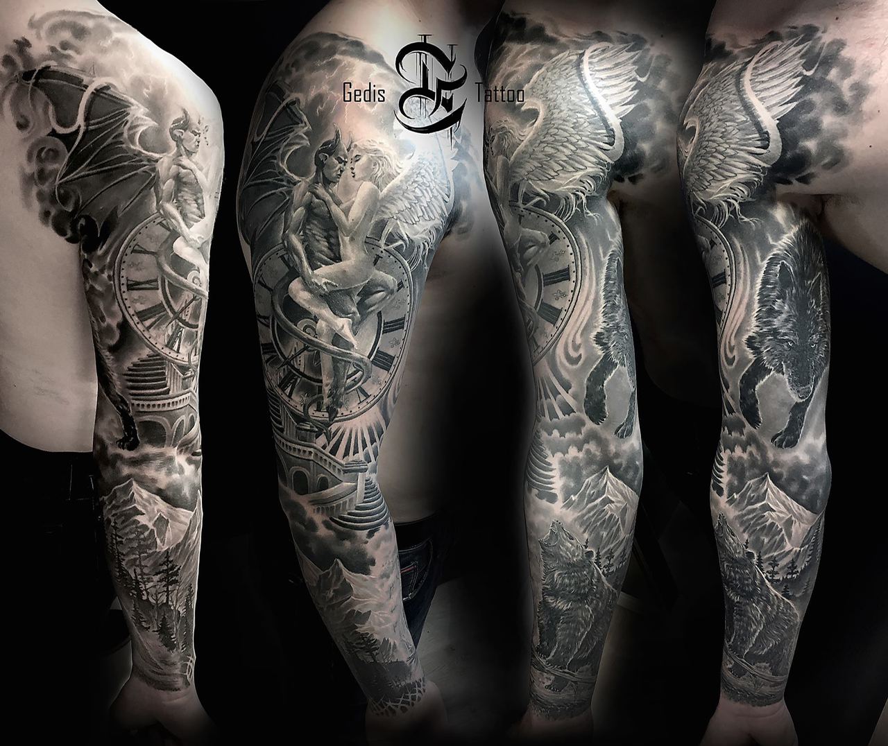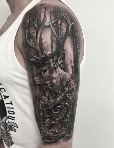 Black and Grey tattoo går godt med den japanske Irezumi, Portræt, Horror, abstrakt, surrealisme og i særdeleshed Realisme.