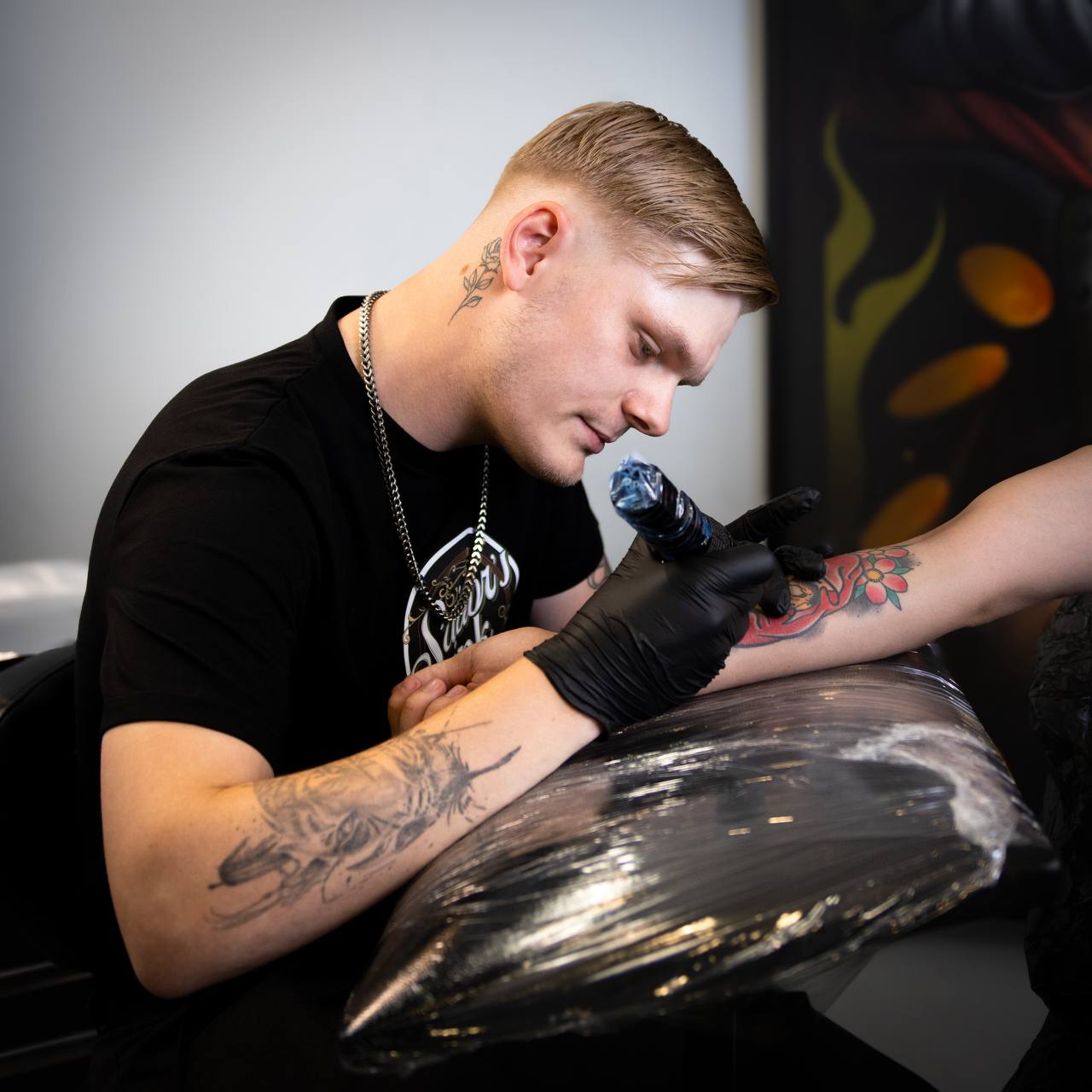 Ikke nok med, at vi har en lang række faste artister i vores tre butikker, så får vi ofte også besøg af gæsteartister. Det betyder, at du sommetider kan blive tatoveret af nogle af Europas bedste tatovører, som bliver hentet ind til vores butikker i hhv. Esbjerg, Odense og Kolding.
